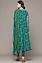 Ritu Kumar features an emerald green kurta in viscose chiffon and viscose lycra jersey base with print. It is paired with leggings and a dupatta. Style it with oxidised jewellery, kolhapuri flats or block heels, and soft waves for brunches, festive gatherings, casual outings, vacation wear, or day events.
