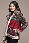 Ritu Kumar presents a fuchsia jacket in silk velvet base with floral print. Accentuate it with pants, stud earrings and flats for evening wear, date nights or winter outings.