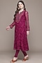 Ritu Kumar features a fuchsia kurta in viscose chiffon and viscose lycra jersey base with floral print. It is paired with leggings and a dupatta. Style it with oxidised jewellery, kolhapuri flats or block heels, and soft waves for brunches, festive gatherings, casual outings, vacation wear, or day events.