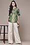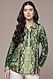 Featuring a green shirt in cotton and silk base with full sleeves and abstract print. Accentuate it with pants, statement earrings, flats and a woven tote bag for a stylish ensemble, ideal for a boho-chic vibe, casual outings, art events, or brunches.