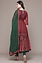 Ritu Kumar features a green kurta in cotton voile, viscose chiffon and viscose lycra jersey base with print. It is paired with leggings and a dupatta. Style it with oxidised jewellery, kolhapuri flats or block heels, and soft waves for brunches, festive gatherings, casual outings, vacation wear, or day events.