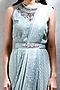 Featuring a green sleeveless kurta in lurex jacquard base with embroidery and round neckline. It is paired with matching belt.