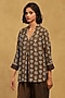 Ritu Kumar presents a green shirt in rayon slub base with screen print. Accentuate it with pants, statement earrings and heels for a casual look.