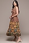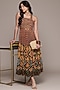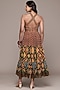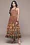 Ritu Kumar features a green ezraiah maxi dress in viscose chinon base. Style it with statement earrings, strappy heels, and a stack of delicate bangles for festive gatherings, destination weddings, sundowner parties, or elegant evening celebrations