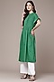 Featuring a green calf-length kurta in cotton base. Accentuate it with statement earrings, flats and a woven tote bag for a stylish ensemble, ideal for festive occasions or family get-togethers.