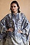 Ritu Kumar presents a grey and off-white kurta in gajji satin base with floral print and batwing sleeves. It is paired with viscose satin pants. Accentuate it with block heels and statement earrings for festive ceremonies.