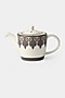 This beautiful white and blue jaamevar kettle set is skillfully crafted in porcelain and have a beautiful print. This set contains one tea pot, one milk pot, and one sugar pot.