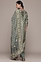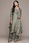 Ritu Kumar presents a khaki kurta in murshidabad silk base. It is paired with rayon crepe pants and a viscose chinon dupatta. Accentuate it with statement earrings and block heels for a festive look.