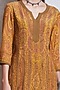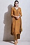 Featuring a mustard and olive green kurta in rayon and crepe base with jamawar print. It is paired with matching pants and a dupatta.