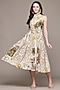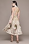 Ritu Kumar presents an off-white dress in cotton and silk base. Accentuate it with statement earrings and block heels for an evening look.