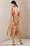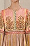 Featuring a pink dress in viscose, satin, and crepe base with ervin print, V-neck, and 3/4th sleeves.