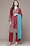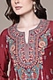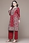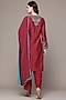 Ritu Kumar features a red kurta in khadi chanderi, rayon slub and viscose chinon base. It is paired with pant and a dupatta. Style it with oxidised jewellery, kolhapuri flats or block heels, and soft waves for brunches, festive gatherings, casual outings, vacation wear, or day events.