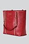 Featuring a red tote bag in leather base. It has a zipper closure.