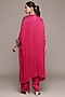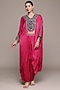 Ritu Kumar features a red kurta in modal satin base. It is paired with pant. Style it with oxidised jewellery, kolhapuri flats or block heels, and soft waves for brunches, festive gatherings, casual outings, vacation wear, or day events.