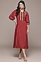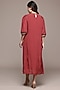 Ritu Kumar presents a red flared midi dress in viscose silk base. Accentuate it with statement earrings and block heels for casual outings, brunches or sundowner.