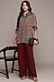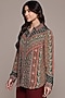 Ritu Kumar features a teal collared shirt in viscose crepe base with full sleeves. Style it with pants, stud earrings, pump heels and soft waves for brunches, casual outings, vacation wear, or day events.