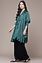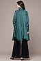 Teal Viscose Jacquard Pleated Flared Top