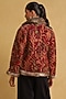 Ritu Kumar presents a wine quilted jacket in silk velvet base with print. It is crafted with the finest materials and will accentuate your casual look.