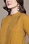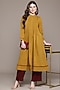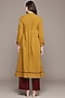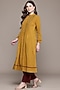 Ritu Kumar features a yellow A-line kurta in cotton viscose dobby base with full sleeves. Style it with pants, oxidised jewellery, kolhapuri flats or block heels, and soft waves for brunches, festive gatherings, casual outings, vacation wear, or day events.