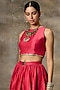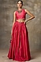 Featuring a fuschia lehenga in silk base. It is paired with a blouse. Accentuate with statement jewellery and heels for a sangeet or cocktail ceremony.