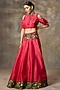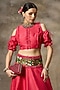 Featuring a fuschia lehenga in silk base with print. It is paired with a blouse. Accentuate with statement jewellery and heels for a sangeet or cocktail ceremony.