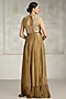 Featuring a gold gown in silk and sequins base with a V-neckline, sequins embroidery and ruffled hem. Accentuate it with minimal jewellery and sleek heels, ideal for evening events or formal gatherings.