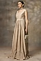 Featuring an ivory gathered gown in silk base with a round-neckline, print and embroidery. Accentuate it with minimal jewellery and sleek heels, ideal for evening events or formal gatherings.