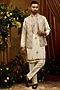 Ivory Silk Thread Embroidered Nehru Jacket Set