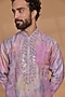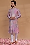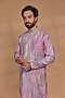 Featuring a multi-colored kurta in silk base with a mandarin collar, mirror work and tie-dye print. It is paired with white churidar pants. Perfect for festive occasions.