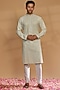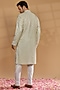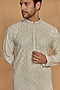 Featuring a pastel blue kurta in lucknowi georgette base with a mandarin collar and sequins work. It is paired with white churidar pants. Perfect for festive occasions.