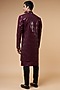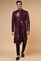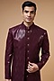 Featuring a wine indo-western jacket in imported suiting base with sequins detailing. It is paired with a matching kurta and pants.