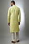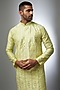 Featuring a yellow kurta in silk base. It is paired with contrasting churidar pants. Perfect wear for a festive occasion or the haldi ceremony.