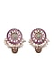 Featuring a pair of gold finish dangler earrings studded with kundan polki and multi-colored kemp stones, set in brass. These earrings radiates timeless elegance, perfect for wedding celebrations, festive soirees or cultural gatherings adding a regal charm to every look.