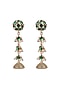 Featuring a pair of gold finish dangler earrings studded with kundan polki and green kemp stones, set in brass. These earrings radiates timeless elegance, perfect for wedding celebrations, festive soirees or cultural gatherings adding a regal charm to every look.