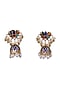 Featuring a pair of gold finish jhumka earrings studded with kundan polki, pearl drops and multi-colored kemp stones, set in brass. These earrings radiates timeless elegance, perfect for wedding celebrations, festive soirees or cultural gatherings adding a regal charm to every look.