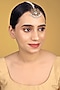 Featuring a gold finish maangtikka studded with kundan polki, pearl drops and multi-colored kemp stones, set in brass. This maangtikka radiates timeless elegance, perfect for wedding celebrations, festive soirees or cultural gatherings adding a regal charm to every look.