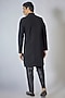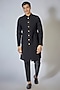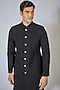 Featuring a black sherwani in japanese twill and poly viscose base with digital self embroidery. It is paired with dupion silk pants. Perfect wear for festive occasions.