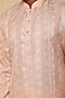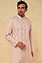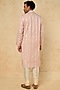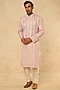 Featuring a blush pink kurta in cotton silk base with gota embroidery and jaipuri print. It is paired with contrasting off-white dupion silk churidar pants.