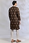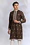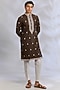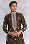 Featuring a brown kurta in cotton silk base with thread and sequins embroidery. It is paired with off-white dupion silk pants. Style it with kolhapuri sandals for a festive occasion, family gathering or pooja ceremony.