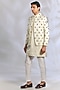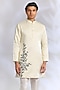 Cream Raw Silk Thread Embroidered Indowestern Set