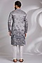 Featuring a grey kurta in cotton silk base with thread embroidery. It is paired with off-white dupion silk mexican pants. Style it with mojaris for a festive celebration, cultural event, wedding or engagement ceremony.