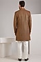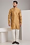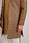 Featuring a maroon indowestern in raw silk base with thread embroidery. It is paired with a cotton silk kurta and dupion silk white pants. Style it with mojaris for a cultural event, wedding, engagement or sangeet ceremony.
