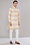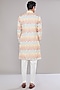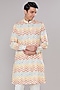 Featuring a multi-colored kurta in cotton silk base with chevron print and sequins embroidery. It is paired with off-white dupion silk pants. Perfect attire for any festive occasion, exuding traditional charm and elegance.