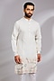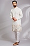 Featuring an off-white kurta in cotton silk base with thread embroidery. It is paired with off-white dupion silk mexican pants. Style it with mojaris for a festive celebration, cultural event, wedding or engagement ceremony.