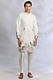 Featuring an off-white kurta in crepe silk base with motifs, beads, cutdana and resham embroidery. It is paired with off-white dupion silk pants. Style it with kolhapuri sandals for a pooja, festive gathering, wedding or engagement ceremony.