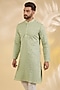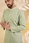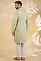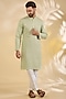 Featuring a pista green kurta in silk base with sequins and resham embroidery. It is paired with off-white dupion silk pants. Style it with mojaris for a grand festive celebration, mehendi, wedding, sangeet or engagement ceremony.