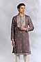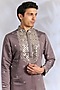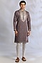 Featuring a purple kurta in crepe silk base with resham embroidery. It is paired with off-white dupion silk pants. Style it with kolhapuri sandals for a festive occasion, family gathering or pooja ceremony.