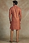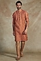 Featuring a red kurta in cotton base with floral print. It is paired with contrasting dupion silk pyjama pants.