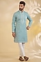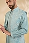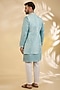Sea Blue Raw Silk Thread Embroidered Indowestern Set