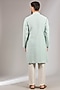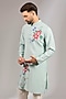 Featuring a sky blue kurta in cotton silk base with floral motif embroidery. It is paired with off-white dupion silk pants. Style the set with mojaris and a classic watch for a refined and traditional look.